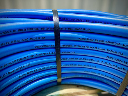 1/2in 300ft Blue Flex Tech SoftWash Hose from MPWSR. Hoses come with ends Crimped on them already. 1/2 Male Threaded ends.